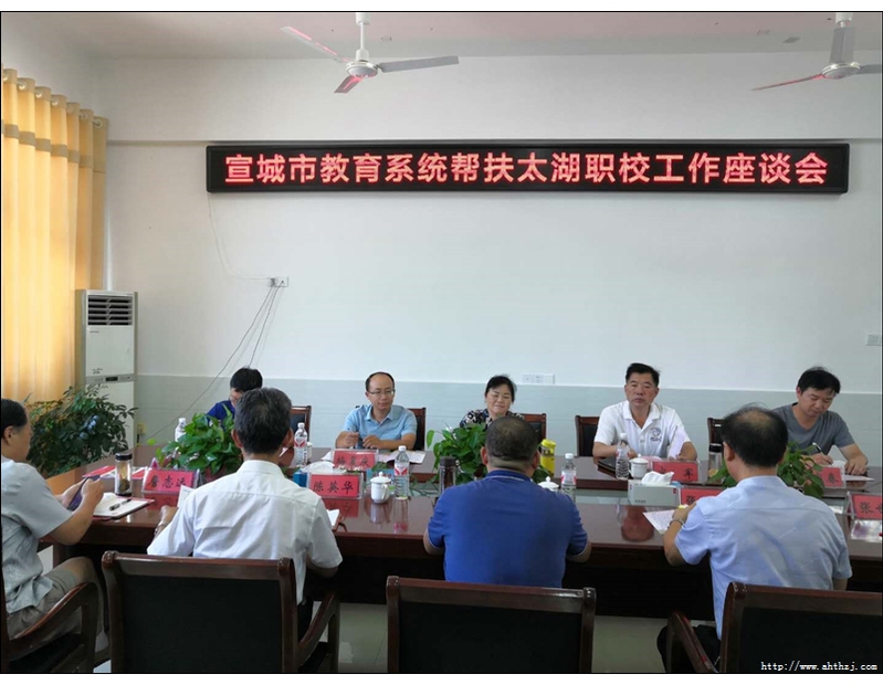 9月3日,宣城市教體局副局長周金保一行7人到太湖職業(yè)技術(shù)學(xué)校對接優(yōu)質(zhì)職業(yè)院校對口幫扶貧困地區(qū)職業(yè)教育工作,安慶市教體局職成教科負(fù)責(zé)人鮑介吾陪同,縣教育局副局長陳英華及太湖職校班子成員、相關(guān)處室負(fù)責(zé)人參加對接交流。