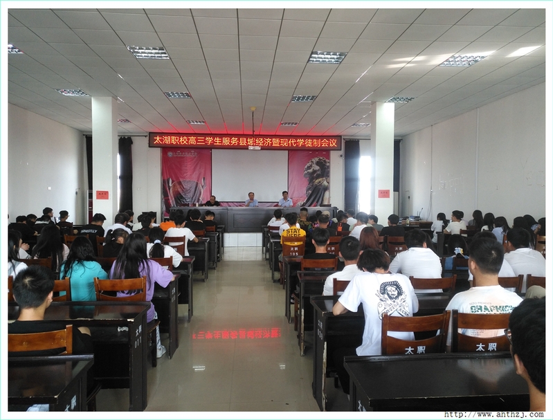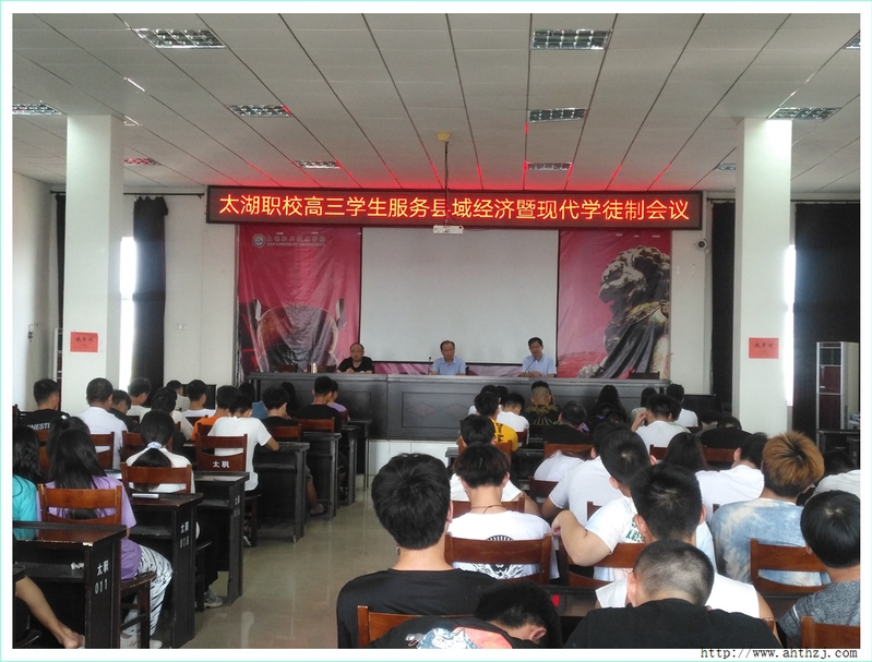 為進一步推進現(xiàn)代學徒制工作,2020年9月5日上午9點,太湖職業(yè)技術學校在教學樓七樓會議室召開了“高三學生服務縣域經濟暨現(xiàn)代學徒制大會”。校長張璇、副校長葉克華以及實訓處相關領導、高三年級組組長及班主任和121名高三學生參加了此次大會。