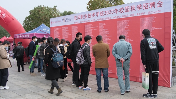 11月20日,安慶職業(yè)技術(shù)學(xué)院與安慶市人社局以及市屬各縣市區(qū)人社局合作舉辦校園秋季招聘會(huì)。