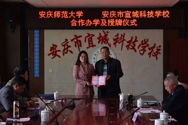 授牌儀式上,余振華對安慶師范大學(xué)長期以來對安慶市宜城科技學(xué)校的支持表示衷心感謝,并介紹了學(xué)校的建校歷史、辦學(xué)理念及辦學(xué)成果,表示不遺余力地為安慶師范大學(xué)實習(xí)生提供實習(xí)、就業(yè)的良好環(huán)境、為貴校輸送優(yōu)質(zhì)的畢業(yè)生生源,希望兩校之間加強(qiáng)交流與合作,共享教育資源長久合作、規(guī)范合作,為安慶的經(jīng)濟(jì)和社會發(fā)展作出積極貢獻(xiàn)。