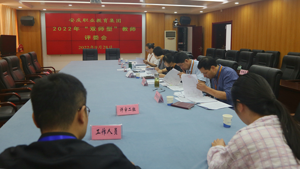 為做好集團中職學(xué)校雙師型教師評審工作,按照市教體局、人社局部署要求,根據安慶職教集團2022年度重點(diǎn)工作計劃安排,集團秘書(shū)處先后印發(fā)《關(guān)于報送2022年度“雙師型”教師認定材料的通知》(安職集團[2022]5號)和《關(guān)于做好2022年度“雙師型”教師認定工作的通知》(安職集團[2022]6號)兩個(gè)文件,明確以《安慶職業(yè)教育集團“雙師型”教師認定及管理辦法(試行)》(教體職成〔2021〕28號)文件為此次評審工作認定依據,確定了個(gè)人申請、學(xué)校初評、集團秘書(shū)處評審核定、公示上報等評審認定程序。為確保本次認定評審工作順利開(kāi)展,集團秘書(shū)處制定出臺《安慶職教集團2022年度“雙師型”教師評審工作實(shí)施方案》,成立評審工作領(lǐng)導小組,設立評委會(huì ),遴選評審專(zhuān)家,確定評審工作階段流程,組建了評審組、會(huì )務(wù)材料組、監督組、保衛組。