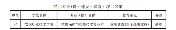 近日,安徽省教育廳公布了高?!半p特色”建設(培育)項目名單,安慶職業(yè)技術(shù)學(xué)院植物保護與檢疫技術(shù)專(zhuān)業(yè)群成功立項為安徽省特色專(zhuān)業(yè)(群)建設項目。