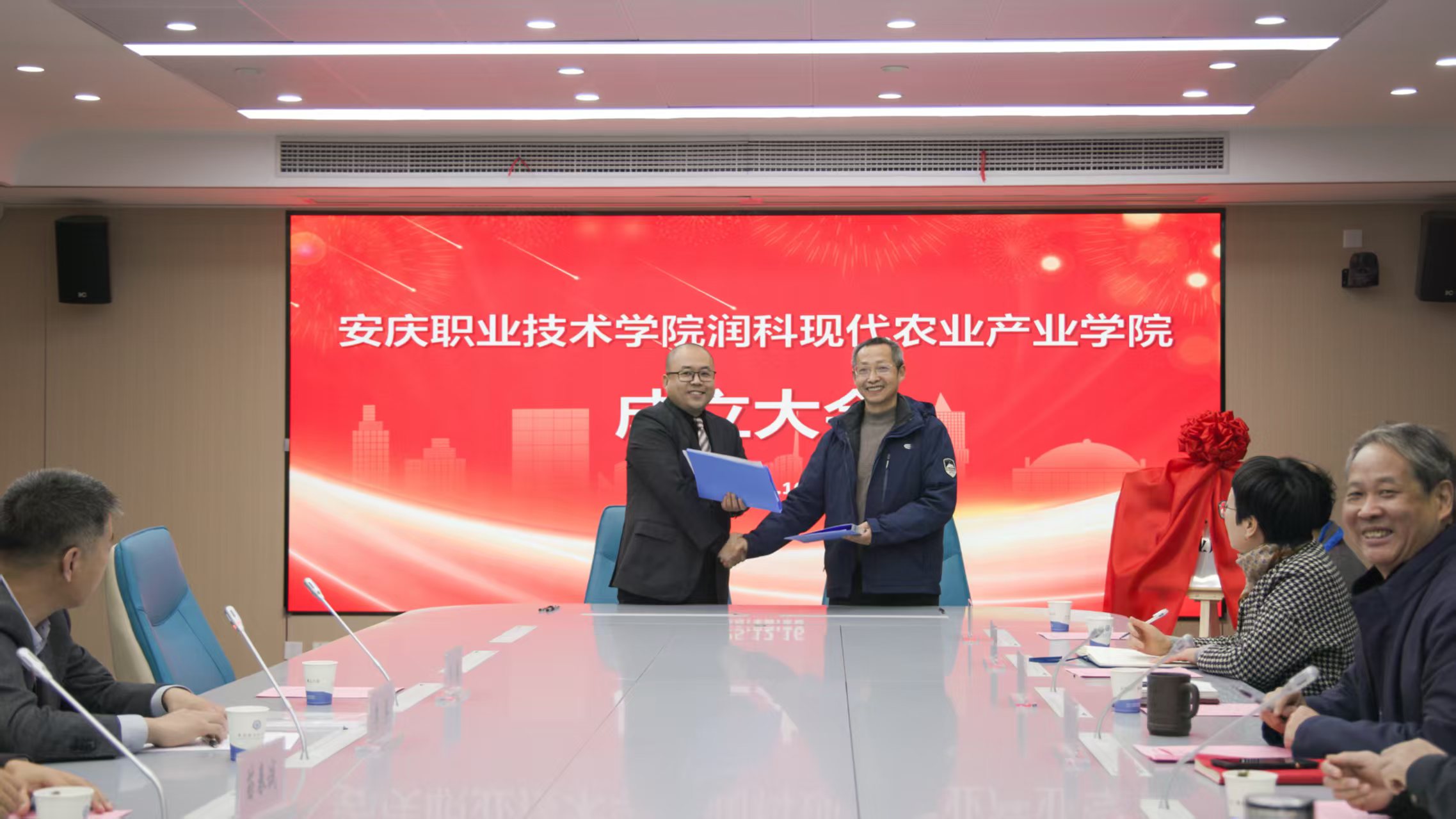 12月16日,安慶職業(yè)技術(shù)學(xué)院與安徽潤(rùn)科農(nóng)業(yè)科技有限公司共建的安慶職業(yè)技術(shù)學(xué)院潤(rùn)科現(xiàn)代農(nóng)業(yè)產(chǎn)業(yè)學(xué)院在校425會(huì)議室舉行揭牌儀式。安慶職院黨委副書記李克讓主持儀式。安徽潤(rùn)科農(nóng)業(yè)科技有限公司董事長(zhǎng)李兵、安慶市農(nóng)業(yè)農(nóng)村局副局長(zhǎng)周克海出席,安徽潤(rùn)科公司代表,校企合作辦、農(nóng)林與服裝學(xué)院負(fù)責(zé)人及教師代表參加。